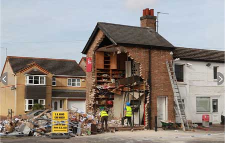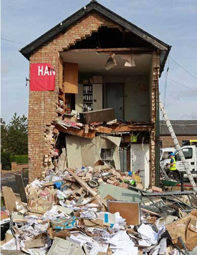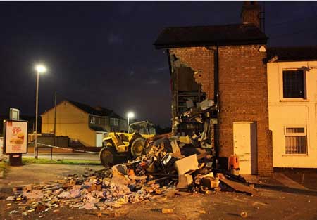 原標(biāo)題:英國笨賊開挖掘機(jī)偷A(chǔ)TM機(jī) 毀掉二層樓空手而歸(高清組圖)