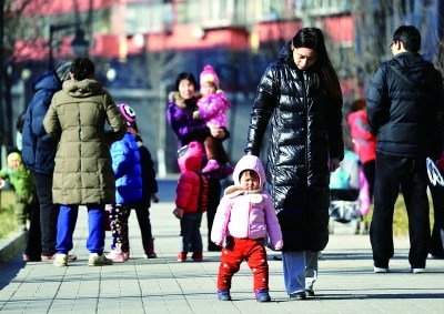 ▲天氣好但氣溫低,上午在通州某小區市民外出穿著厚厚的冬衣攝/記者劉暢