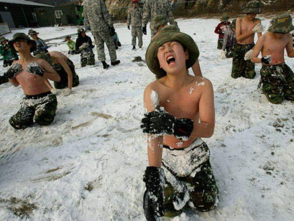 韓國軍事化戒網(wǎng)癮,學(xué)生冰天雪地赤裸上身受訓(xùn)