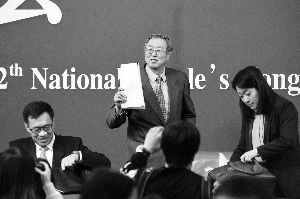 十二屆全國人大四次會議新聞中心于3月12日(星期六)10時在梅地亞中心多功能廳舉行記者會,邀請中國人民銀行行長周小川、副行長易綱、副行長兼國家外匯管理局局長潘功勝、副行長范一飛就“金融改革與發展”的相關問題回答中外記者的提問。
