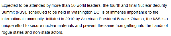 第四屆核安全峰會(huì)在美國(guó)首都華盛頓拉開(kāi)帷幕,全球50多位國(guó)家領(lǐng)導(dǎo)人出席會(huì)議,這對(duì)國(guó)際社會(huì)帶來(lái)的影響不言而喻。美國(guó)總統(tǒng)奧巴馬于2010年發(fā)起了首屆核安全峰會(huì),旨在保證核材料的安全運(yùn)用,防止其落入“流氓國(guó)家”和非國(guó)家行為體等危險(xiǎn)分子的手中。