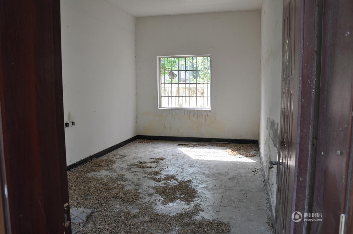 院里雜草叢生,空無一人,兩邊各有一棟兩層樓房,包括廚房和活動室共40間房,房間都鋪了地磚,裝了防盜門和吊扇,可惜的是幾乎所有房間都沒了窗戶,防盜門也是破損的!皬奈醋∵^人,搞糟了!备浇晃环N菜的村民說,敬老院大概三年前建成,花了不少錢,裝修好后就關了門。