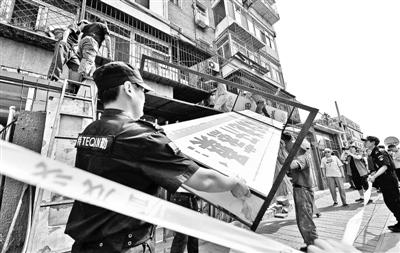 大井南里4號樓一樓臨街原本是圍欄,從去年開始,陸續(xù)有商戶將圍欄拆卸,私自搭建棚戶,逐漸成了違建底商一條街。開設的門店有經營麻辣燙、包子的小餐廳,也有洗衣店、打印店等,給樓上及附近居民帶來了極大的噪音污染和環(huán)境污染。5月27日上午,豐臺區(qū)食藥監(jiān)局聯(lián)合盧溝橋街道辦事處、工商、城管、公安等部門,對這條街上的違建和無證無照商戶進行了統(tǒng)一查處。摘除25家違建無照無證商戶招牌,責令其清理營業(yè)場所。