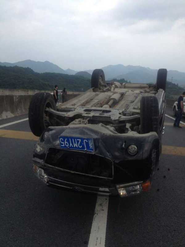 6月27日15時30分許,S26(諸永)高速往諸暨方向48公里處發生一起翻車事故。高速交警紹興支隊民警趕到現場,發現車輛四腳朝天翻在快慢車道的分道線上。