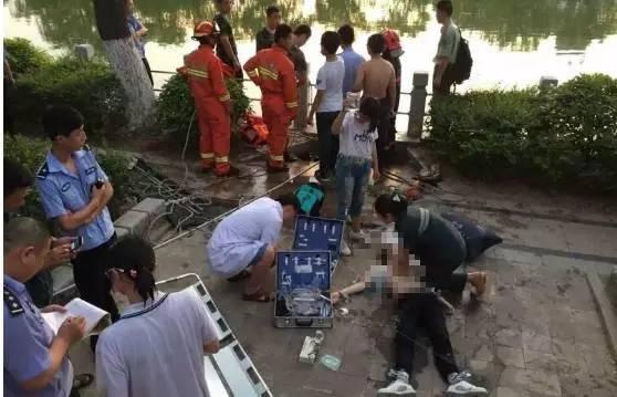 李慶磊表示,河岸兩旁濕滑且有大量淤泥和水草苔蘚等,救援人員無法上岸,最后用繩子拉著從階梯上才將溺水男孩搭救上岸。