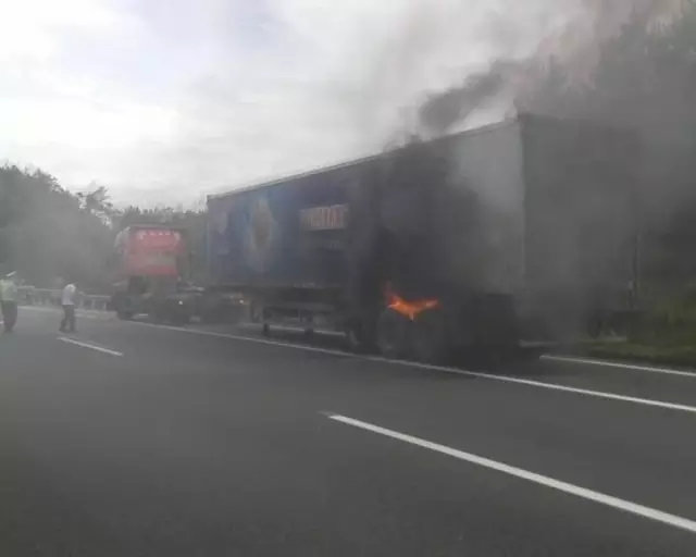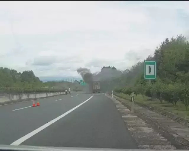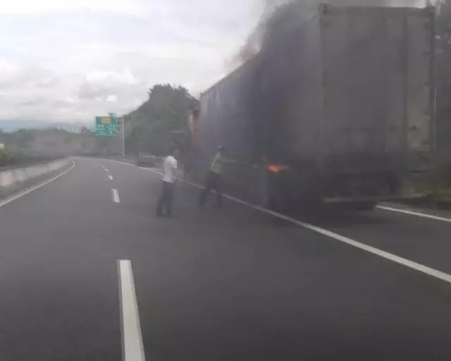 直擊現場:剎車片過熱起火 貨車高速上自燃