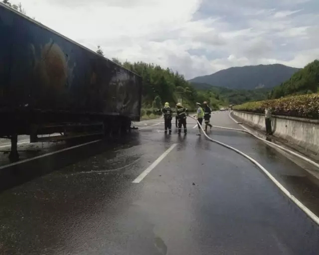 6月29日9時10分許,龍巖高速交警支隊五大隊民警接連城指揮中心報警稱:長深高速三明往龍巖方向連城段有一輛貨車自燃。接警后,五大隊民警立即趕往現場,并在第一時間聯系消防人員。