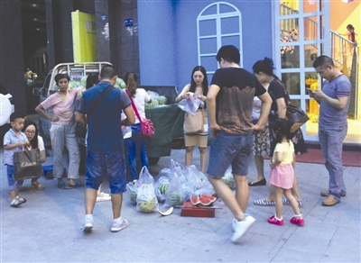 晁貴武和姜鳳瓊的西瓜攤位于五通橋城區音樂廣場附近。從6月15日下午開始,兩人發現買西瓜的人陡然增多,而且很多是一次性買10多個的大客戶。姜鳳瓊一問才知道,原來是有熱心人將他們賣西瓜為兒子籌集治療費的事發到了微信朋友圈。