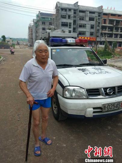當班執勤民警任警官接到指令后立即駕車前往,沿方巖收費站一路向永康方向搜尋,在離方巖收費站5公里的地方,發現有一位老人,一頭稀疏白發,上身著一件白色T恤,下身穿一條藍色的短褲,腳上搭一雙藍色的拖鞋,右手拄著拐杖,慢慢悠悠地在快速車道內沿著路緣石行走。