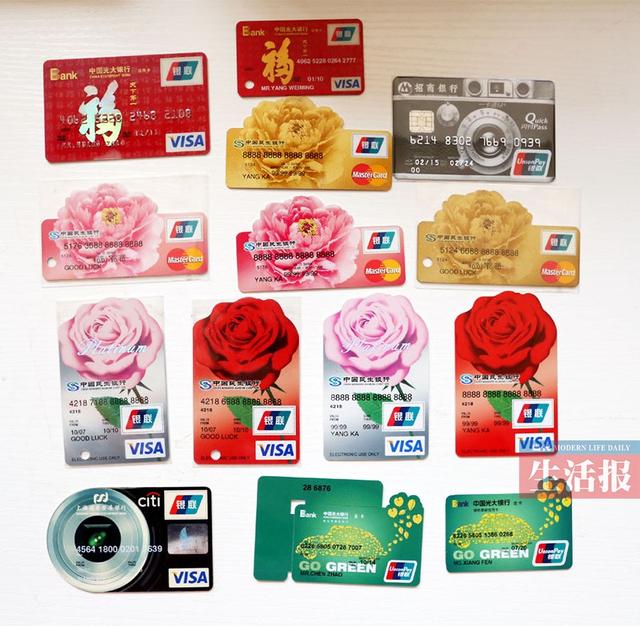 記者發現,這些銀行卡不僅印刷精美,外形也是千奇百怪,有花卉狀、汽車狀、照相機狀……記者不禁產生疑惑,這些古怪的銀行卡是怎樣插入自動取款機使用的?對此,他解釋說,這些異形卡本身就是作為收藏藝術品發行的,并不具備自動存取款功能。