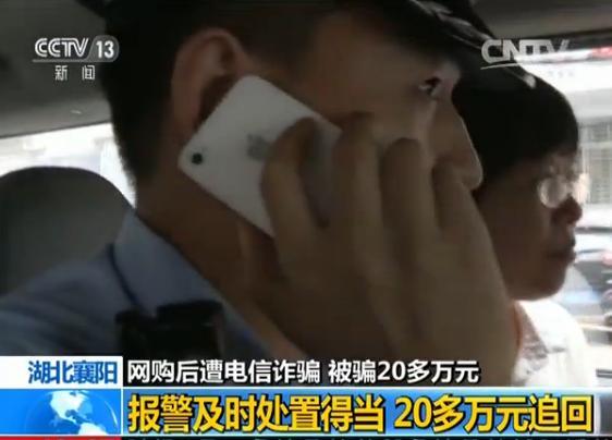襄陽市公安局樊城分局米公派出所民警 段紅衛:到達銀行后,跟銀行工作人員取得聯系,銀行開通了綠色通道,對這個(理財)賬戶進行了凍結。