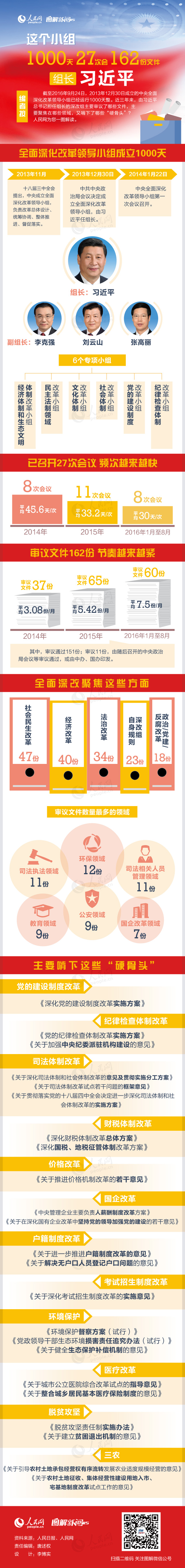 作為組長,習近平坐鎮指揮,親自謀劃、協調、督促各項改革進程。言出必行,過去的1000天里,中央深改組交出了一份漂亮的改革成績單。
