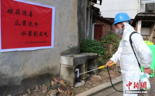 9月30日,救援人員在浙江麗水遂昌山體滑坡災區進行消毒。中新社記者 何蔣勇 攝