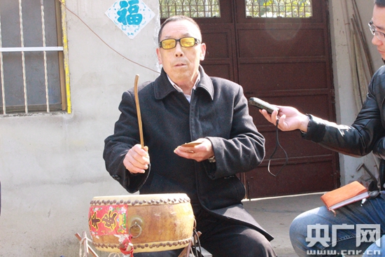 周明漢在演奏淮北大鼓劇目《白猿盜桃》(央廣網記者 孫永政 攝)