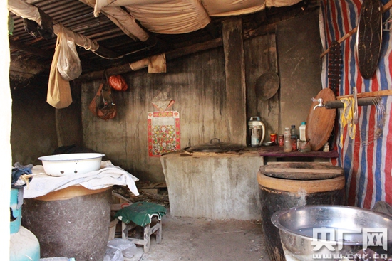 周明漢家里簡陋搭建的廚房(央廣網記者 孫永政 攝)