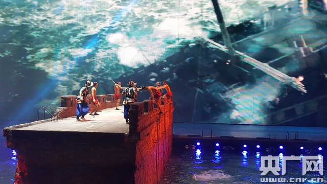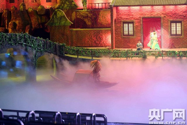 在神游華夏大劇院內,《閩南傳奇》正在上演,整場演藝共分六幕:天造鷺島、島城大戰、南洋歷險、漁村人家、龍的傳人、福佑華夏,以閩南文化為主線,融入當地特色,把民俗、民族風、民族音樂和人文歷史,用高科技的展示手法與國際最新的旅游演藝劇目結合起來。