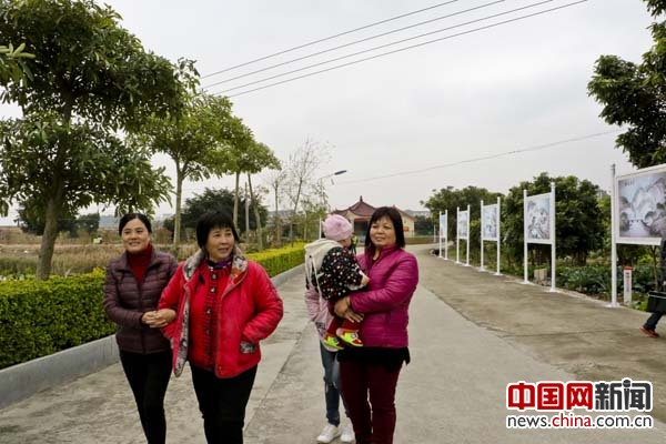 王老師(左)和她的好姐妹們在村里散步。中國網記者 金慧慧 攝