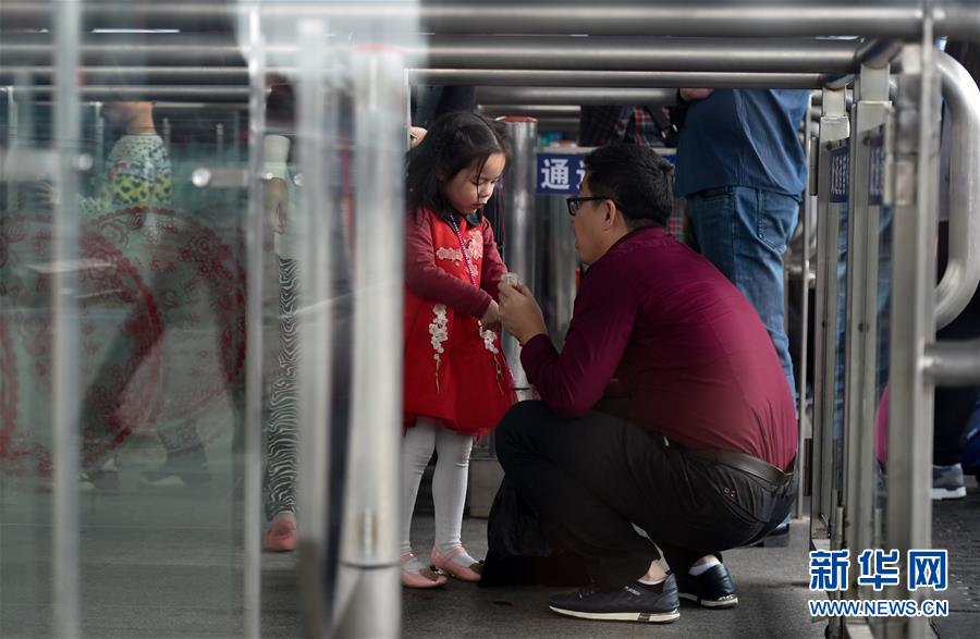 2月2日,在深圳北站,一名父親蹲在進站口與女兒告別。春節長假即將結束,深圳迎來節后返程高峰。經過春節的短暫團聚,前來深圳探望親友的旅客踏上歸途,上演一幕幕告別的場景。 新華社記者毛思倩攝