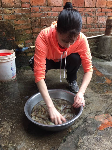 我們走進屋子,丈夫的弟弟、妹妹以及表哥都歡迎我們回家,隨后是他的叔叔、阿姨等長輩。丈夫家的許多家庭成員都在當地成家。我估計他家有超過10個親戚在當地生活。當天他的父母正忙著在租用的島上養蝦,我們要到第二天才能見到他們,家中非常安靜。根據春節的傳統,每個人都平平安安回到家中,一家人團圓在一起。不過屋子的墻上或門上并沒有任何象征春節的裝飾品,唯一的變化是,客廳的香火燒得更旺了。