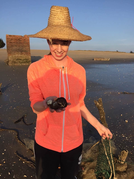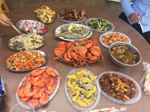 這里是漁村,因此我們吃的每頓飯里都有螃蟹、牡蠣/蛤、魚或者蝦等。我在美國中西部一個小鎮長大,童年并沒怎么吃過海鮮。如今我依然不太能適應吃海鮮,盡管它們都是從島上面鮮活抓回來的。許多人可能認為我瘋了,因為我通常吃的并不多。說實話,有些海鮮我喜歡吃,但有些確實不喜歡。如果吃太多海鮮,我還會生病。我丈夫卻不一樣,他吃起海鮮來,就像一個無底洞,能吃個不停。
