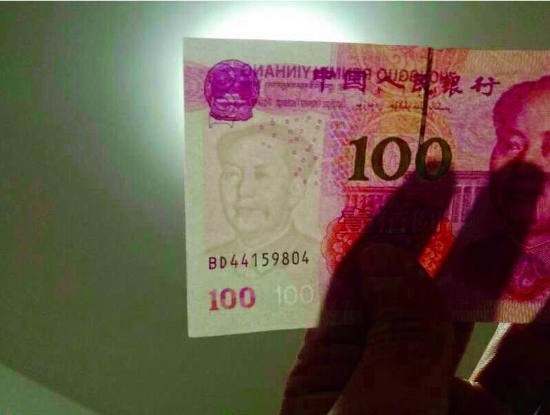“以前曾在報紙和電視上看過有人在銀行取到錯版人民幣的新聞,沒想到,這樣的巧合會輪到自己身上!苯眨易∥洳缎浅堑膭⑾壬鸁o意間發現,自己在銀行取的一張編號為BD44159804的新版百元鈔票上,毛主席水印嘴角左側多了顆又長又大的“痣”。