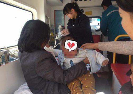 幸虧冬天衣被包裹得多,嬰兒面部有大面積淤青暫無生命危險,10:42分,救護到現(xiàn)場接走傷員。