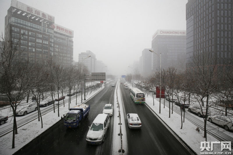 北京市迎來今春首場降雪(央廣網記者 石昊鑫 攝)