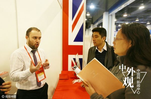 2016年10月22日,北京中國國際教育展上,家長在英國留學展臺咨詢。視覺中國