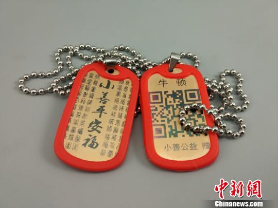 圖為小善公益設計制作的“小善平安福”二維碼防走失身份牌 小善 攝