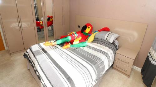 從廣告照片中可見,這名“鸚鵡男子在這套價值22.5萬英鎊的房子的多個角落留影。有時在床上、有時在廁所浴缸里、有時則在露臺上燒烤。
