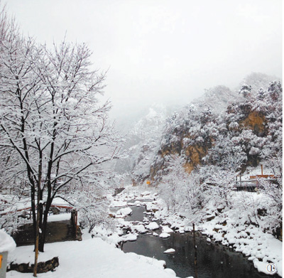 從灃峪口進山后,到凈業寺附近,即已漫天飄雪,但山上積雪并不多。