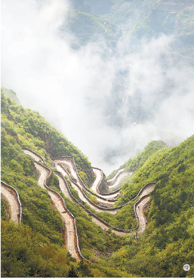 圖④:太行大峽谷里的盤山路被綠意環繞。