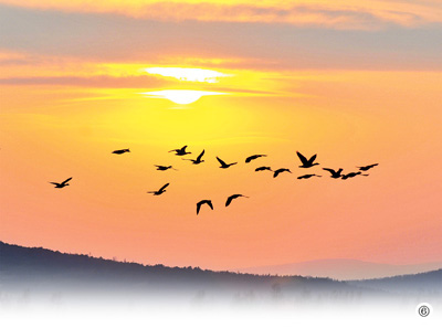 綠草雖然還沒冒頭,上萬只大雁卻已尋覓著春天的氣息來到這里棲息和覓食;蚴桥懦梢恍校蚴切纬伞叭恕弊,或是成片成群漫天飛舞(圖⑥,資料圖片)……