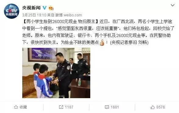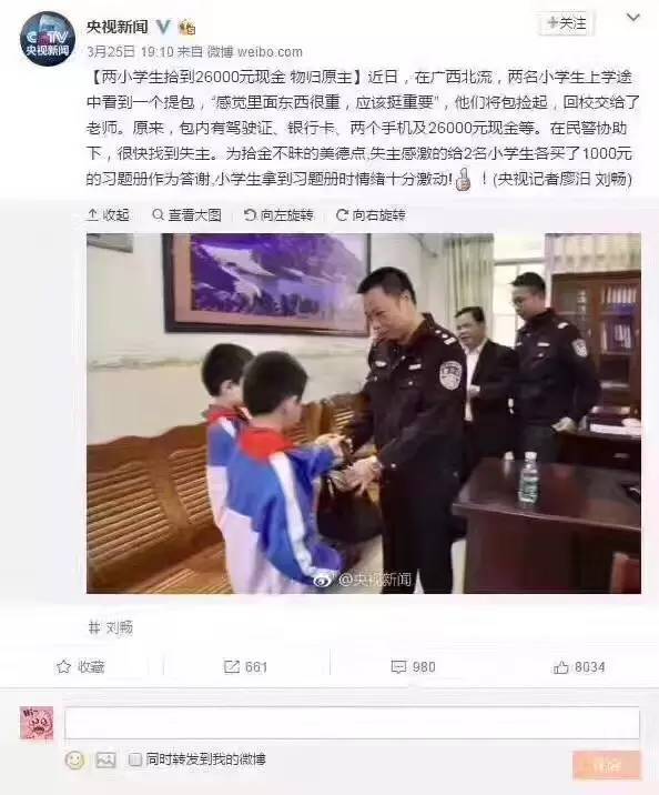 。ㄔ瓨(biāo)題:失主回贈(zèng)撿錢小學(xué)生1000元習(xí)題冊?這張圖刷屏了!然而央視微博卻回應(yīng)… )