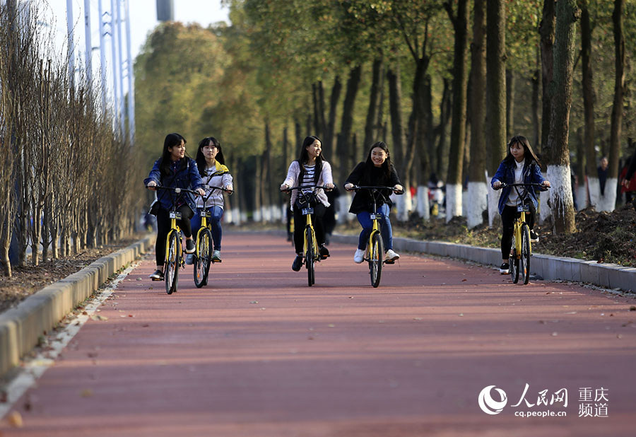 人民網重慶3月27日電 近日,重慶市首條自行車慢車系統在重慶大學城建成投用,該道路全長約5公里,最寬處約3米,由重慶市沙坪壩區市政部門投資建設,分別位于重慶大學城北路、南路等路段,將原有人行道部分區域改造成彩色路面,供自行車專用,優化交通出行結構。(王嫚、何超)