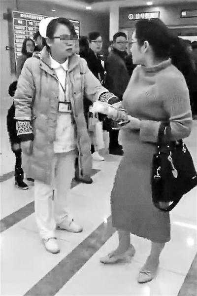 駱護士:我返回總臺工作大概20分鐘后,又有一個患者找到我說“你們醫院樓上有醫托”,當時我的火就上來了。這醫托就是在跟我們玩捉迷藏,我前腳剛走她又上來騙人,我氣的都語無倫次了。我到了二樓又看到那個穿綠色毛衣的醫托在掛號的窗口特別熱情地跟人搭訕,我上去就抓住了她,同時又給保安打了電話。后來就是視頻里的那些了,保安來了就把那人帶走了。