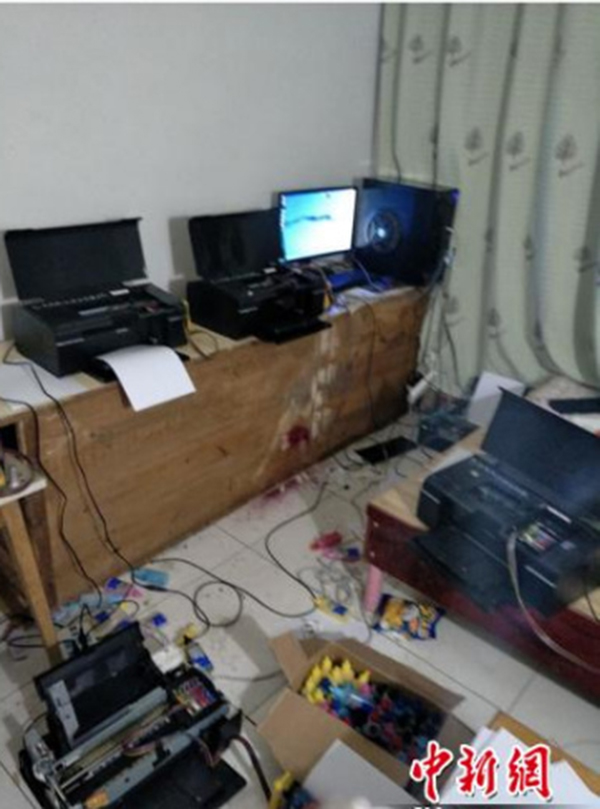 2016年7月,嚴(yán)某租賃了新市鎮(zhèn)輕機(jī)大道一棟臨街四樓的住房,將六臺(tái)打印機(jī)、一臺(tái)燙金機(jī)以及配套的電腦主機(jī)安放在該出租屋里。其網(wǎng)購(gòu)打印假幣的各種原材料花費(fèi)30000多元,僅紙張材料就重達(dá)一噸多,共印制面額10元、20元的假人民幣18000張。