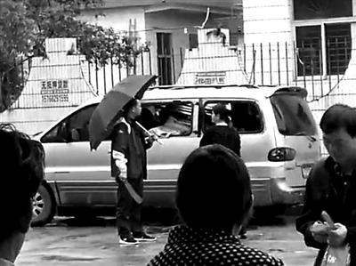 他們有另外兩三臺車,應該是坐人的,剛好上面有一座橋,他們就開到橋上面去了。過了5分鐘,我上去看到他們大概有十幾個人,七八個男的,七八個女的,基本都是二十歲到三十歲之間。我車上剛好有一把刀,就拿過來,他們還是不退,要把一車東西拉走。我不管他,我敲爛一塊玻璃之后,他們開始退錢。