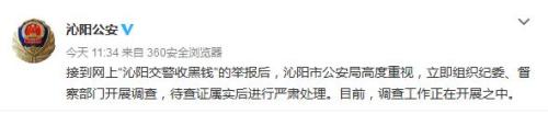 中新網(wǎng)4月5日電 河南省沁陽市公安局官方微博今日發(fā)布消息稱,接到網(wǎng)上“沁陽交警收黑錢”的舉報(bào)后,沁陽市公安局高度重視,立即組織紀(jì)委、督察部門開展調(diào)查,待查證屬實(shí)后進(jìn)行嚴(yán)肅處理。