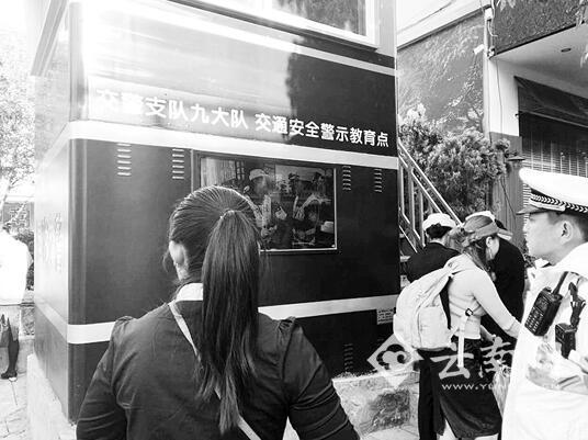 在九大隊交通安全警示教育點(路口崗亭)前,交警對其姓名進行了登記。然后,女孩站在崗亭前,看起了警示片。面對直播交警,她說:“我就是為了趕時間!”直播交警說:“如此一來,你不是浪費了更多時間嗎?”