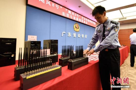 廣東省公安廳通報,廣東省公安廳組織江門、深圳、惠州等地警方赴湖南、福建等省,對“颶風8號”“颶風9號”兩起特大電信網絡詐騙專案開展收網行動,成功摧毀多個電信網絡詐騙犯罪團伙,凍結涉案資金近億元。中新社記者 陳驥旻 攝
