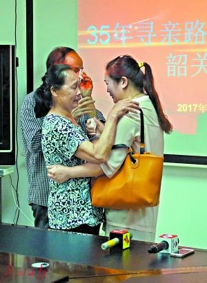 當(dāng)湖北女子何女士風(fēng)塵仆仆地從東莞趕到韶關(guān)時(shí),她仍有些不敢相信自己和離別35年的親生父母就要相見(jiàn);貞浧鸶改福骸拔抑挥浀冒职謰寢尪奸L(zhǎng)的很高。”這是父母留在她幼小的腦海里唯一的印象。