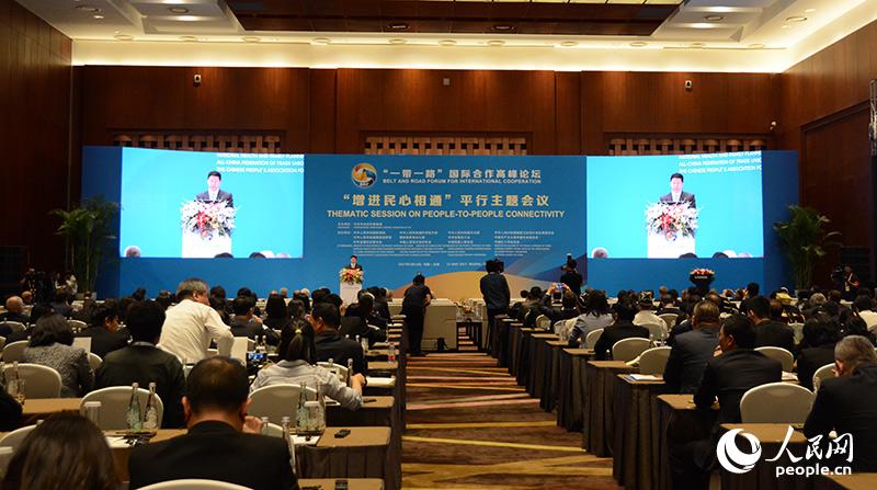 5月14日下午1時30分許,來自60多個國家的400余名代表在《一帶一路is how》短片歡快的音樂聲中陸續進入“增進民心相通”平行主題會議會場,共話“一帶一路”建設,共同架起民心相通的友誼之橋。