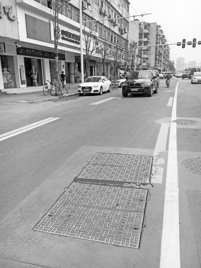 昨天上午,記者根據來電線索,在漢陽大道532號花前樹下小區門口,看到了公交車專道上那幾個令王先生等居民鬧心的窨井蓋。只要有車子碾過,窨井蓋就會發出巨大的響聲。