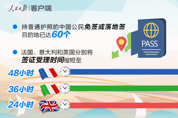 中國公民申辦簽證也越來越便捷、手續越來越簡化。目前,國內近20個城市設有數百個外國簽證中心。英國、比利時聯合推出“簽證一站式”服務,法國、意大利和英國分別將簽證受理時間縮短至48小時、36小時和24小時。