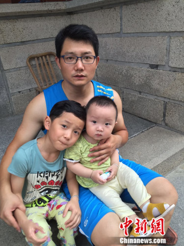 圖為二孩“奶爸”和兩個(gè)可愛的孩子。呂春榮 攝