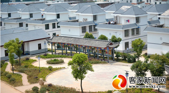 近日,記者來到興國縣銘恩新村,只見一幢幢青色坡頂、白色磚墻的三層聯排新房錯落有致,點綴在青山綠水之間。