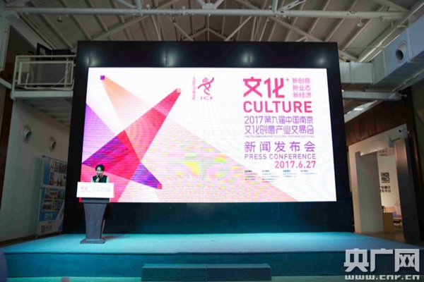 央廣網(wǎng)北京6月28日消息(記者雅萍)6月27日,“2017第九屆中國南京文化創(chuàng)意產(chǎn)業(yè)交易會”首次新聞發(fā)布會在南京國創(chuàng)園舉辦。江蘇省委宣傳部、江蘇省科技廳等主辦單位處室負(fù)責(zé)人,南京市委宣傳部、南京市文廣新局、南京市科委、南京市旅游委等承辦單位分管領(lǐng)導(dǎo),以及蘇寧環(huán)球、上海游族、玲瓏天文化、大塘金文化等科技文化企業(yè)代表、各類服務(wù)提供商代表等共計(jì)100余人出席了發(fā)布會。中共南京市委宣傳部副部長潘谷平,介紹了南京文交會轉(zhuǎn)型發(fā)展的探索之路,以及本屆展會的主題定位、特色內(nèi)容。