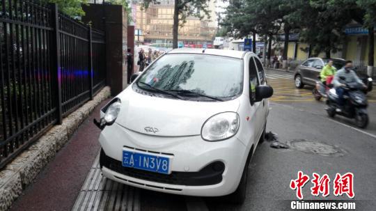 圖為肇事的共享電動汽車。 鐘欣 攝