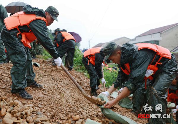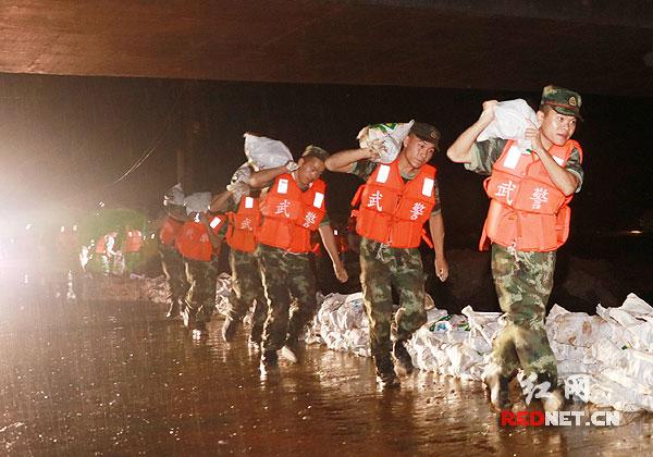 上午10時,益陽市資水桃江站水位超警戒水位4.92米,直屬支隊政治委員謝四平率領第二梯隊300余名官兵緊急馳援。昨晚,該支隊第一梯隊300余名官兵從長沙冒雨趕到益陽桃江縣后,夜以繼日輪番作業,加固堤防10余公里,轉移群眾100余人,排除險情10余處。今晚,該支隊700余名官兵將在桃江縣城關垸和牛潭河垸繼續進行加固堤壩作業。
